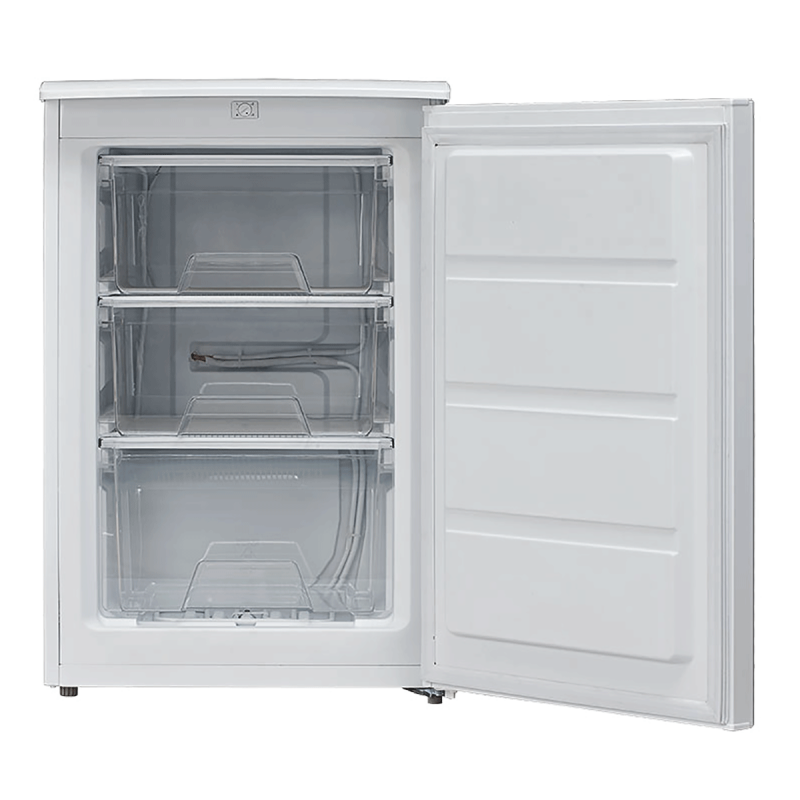 Uprkos kompaktnim dimenzijama (845 x 553 x 574 mm), VOX VF 5108 E se može pohvaliti neto kapacitetom od 88 litara, pružajući dovoljno prostora za vašu zamrznutu robu. Tri plastične fioke pojednostavljuju organizaciju i pristupačnost, omogućavajući vam efikasno skladištenje i vađenje artikala.